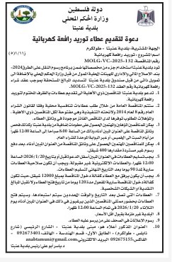 #إعلان عطاء توريد رافعة كهربائية لبلدية عنبتا ضمن الشروط والتفاصيل الواردة أدناه